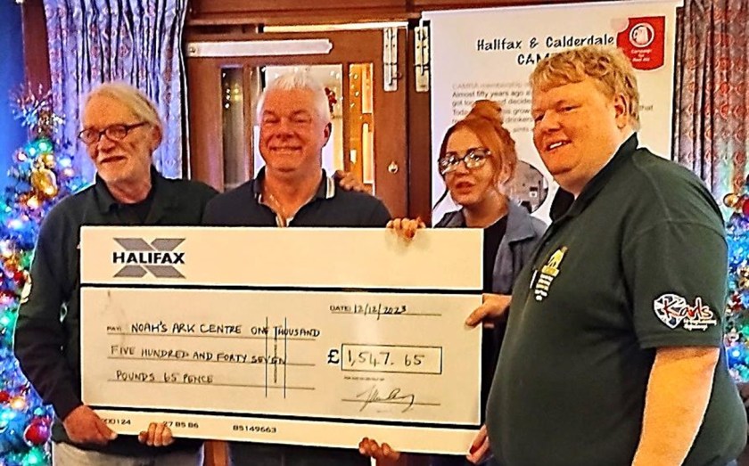 At a well-attended Halifax and Calderdale CAMRA Christmas Social at the Dusty Miller, Mytholmroyd on Tuesday 12th December a cheque for £1,547.65 was presented to the Noah’s Ark Centre who were the Festival Charity at the 2023 Calderdale Beer and Cider Festival held at the Viaduct Theatre, Dean Clough at the end of September. In addition to the money raised, an additional £475 was obtained via the charity’s independently organised raffle.